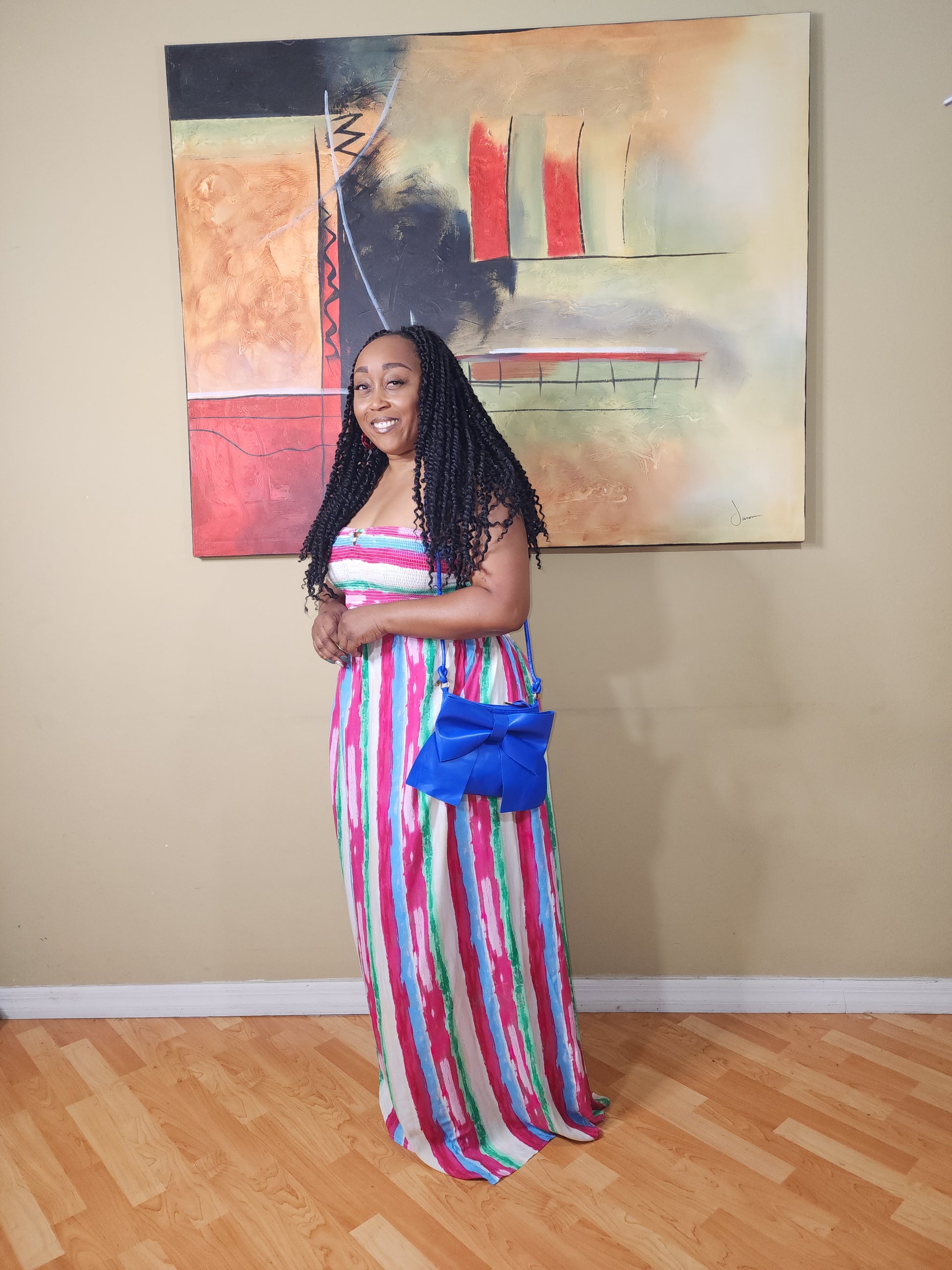 This bag is literally the gift! It's bow-shaped flap immediately gives off feminine chic vibes. The top zipper opens to a small yet open interior. The long strap allows for shoulder or crossbody wear. Lightweight.
