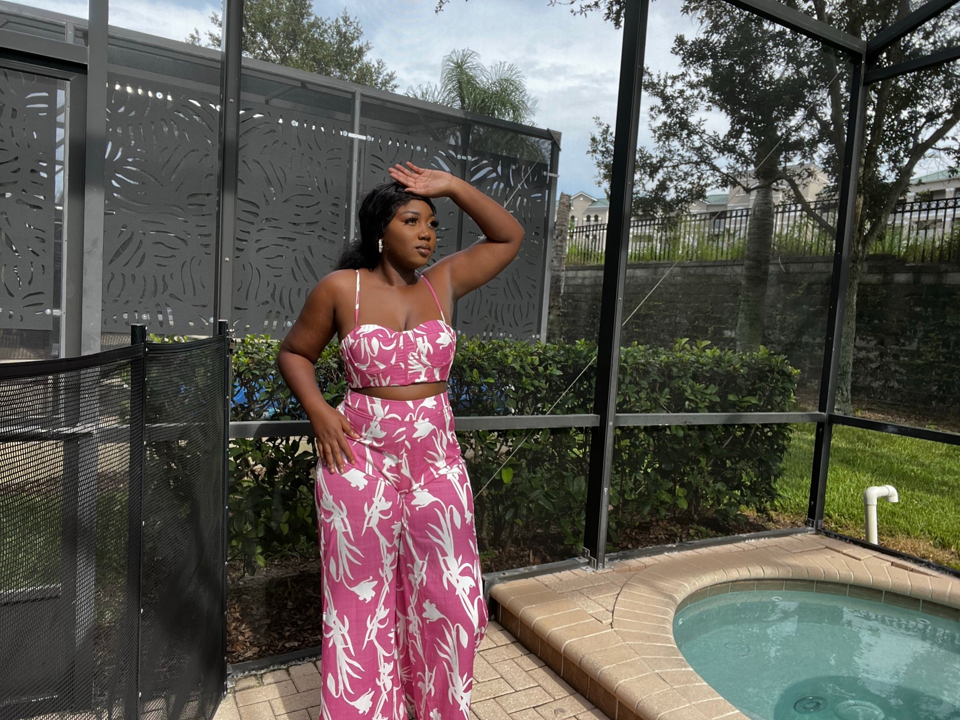 You deserve a treat. Add our “It’s My Season” pant set to your cart today! This two-piece features a crop top with adjustable spaghetti straps, built-in bra, and back zipper closure. You will also love the high waisted, wide leg pants with elastic waistband.