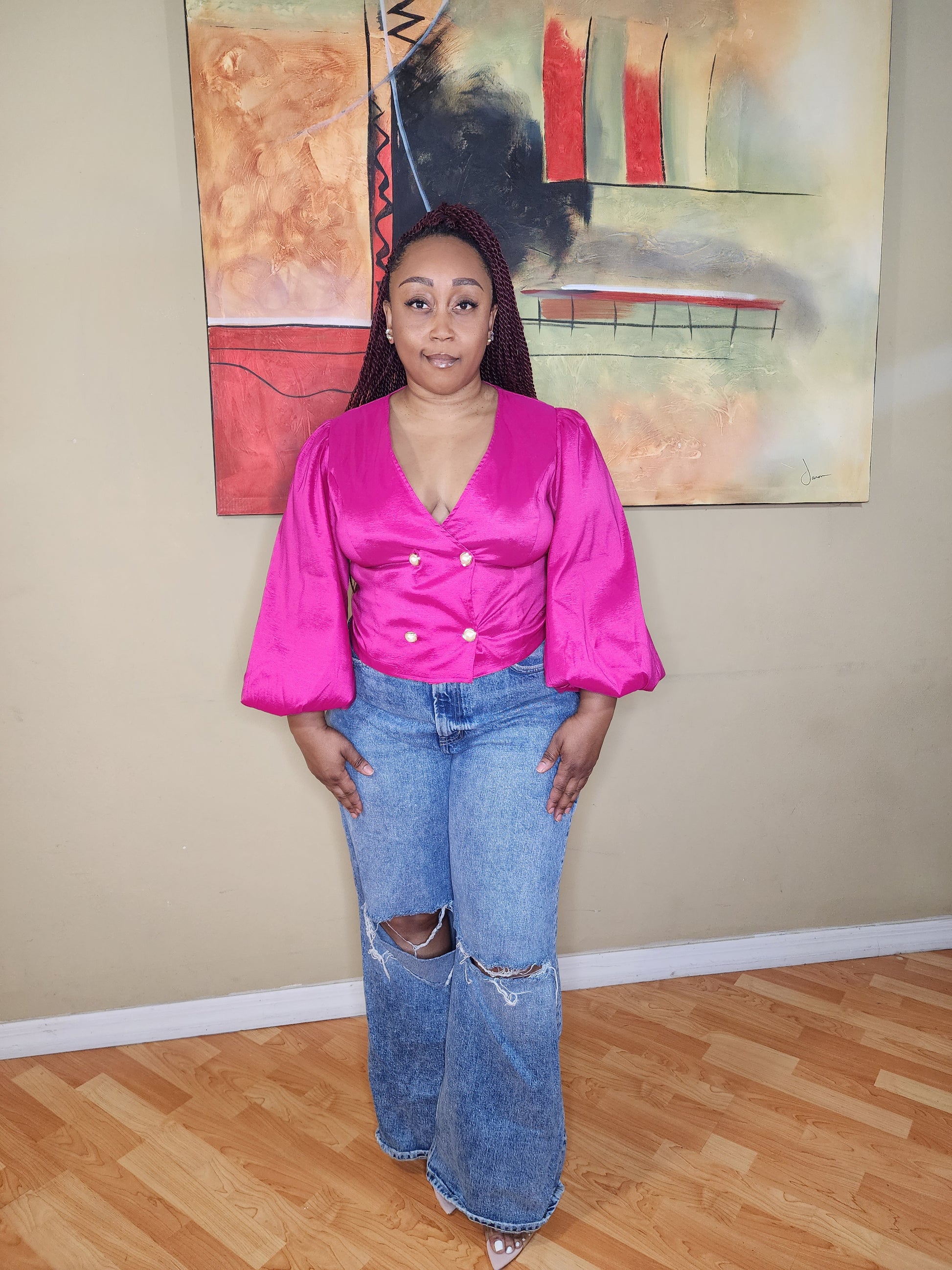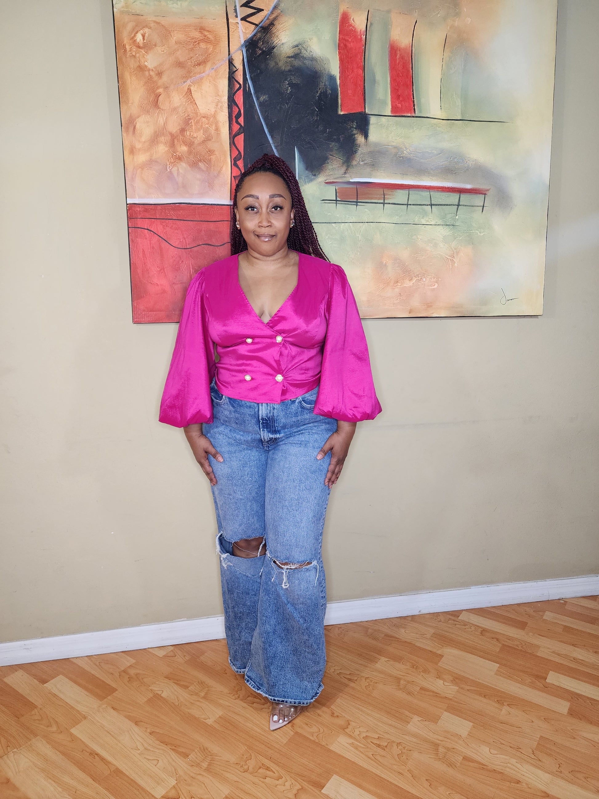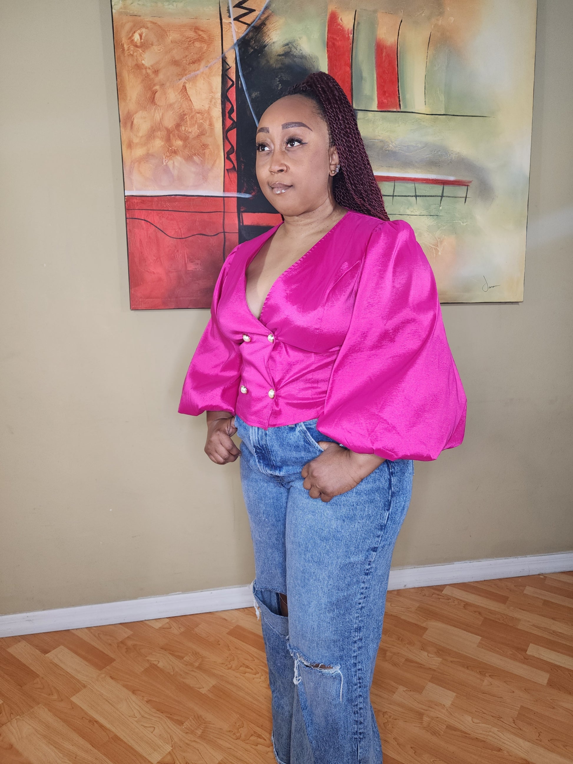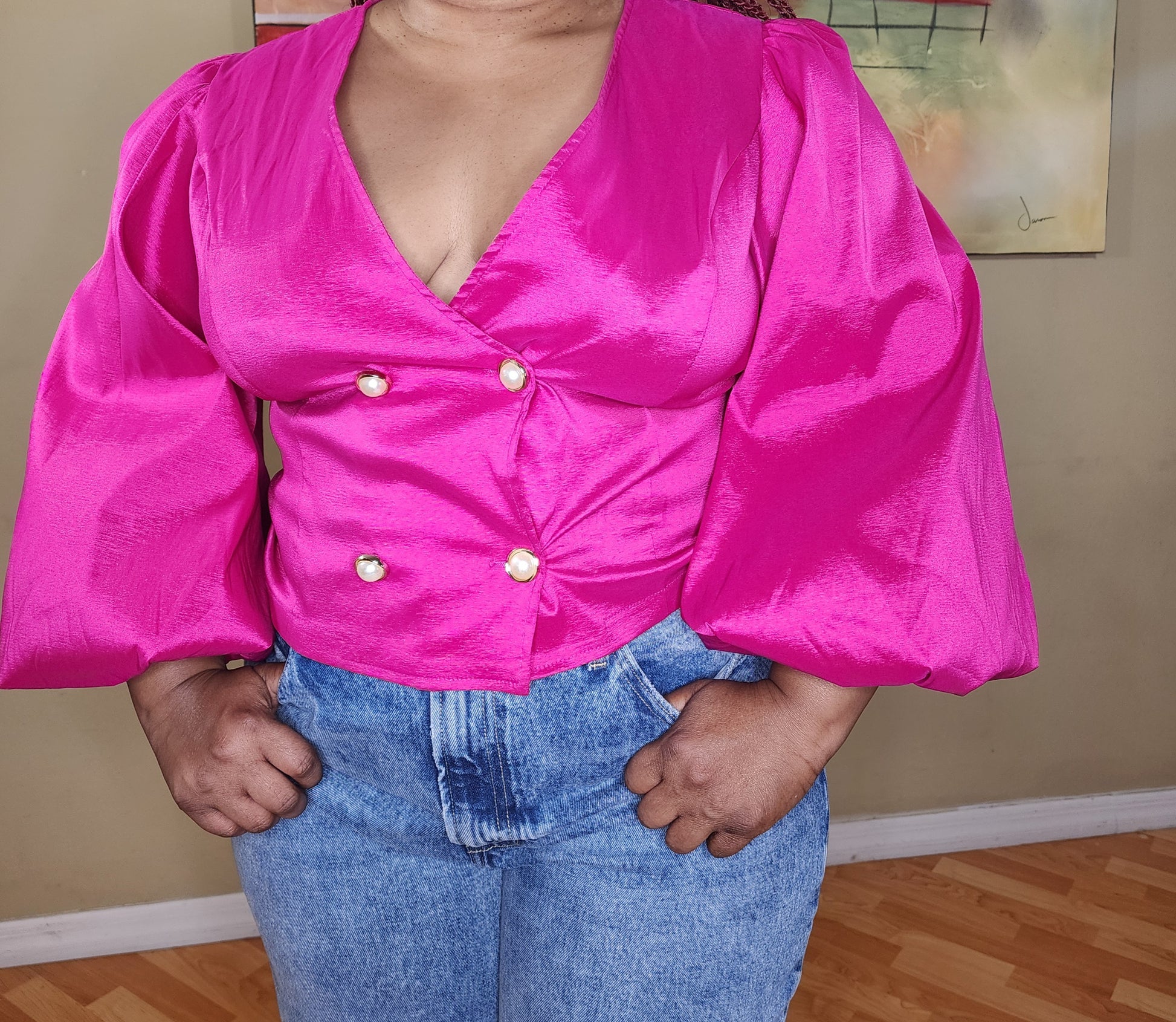 This sophisticated top is exactly what you need! Our Poised and Pretty item is a double-breasted, structured top. It features a little over three-quarter sleeves with elastic cuffs. There are front facing decorative buttons and a hidden, internal button. Rock it with jeans for a casual glam look or elevate to luxe style with tailored trousers and heels.